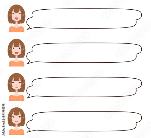 横長めな吹き出しと女性の顔のセット素材