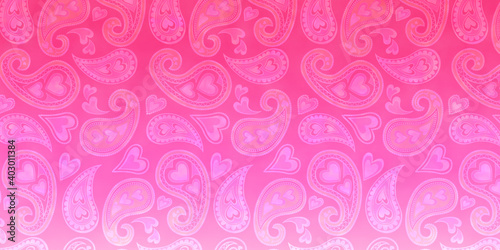 ハートのあるピンクのかわいいペイズリー柄