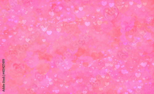 サーモンピンクのかわいいハート柄、バレンタイン、大小様々なハートが沢山ある背景