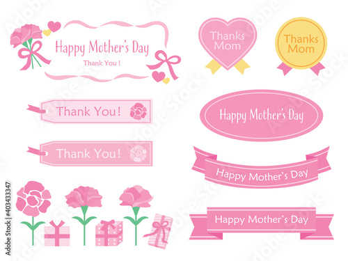母の日のタイトルやカーネーションやシールやタグのセット