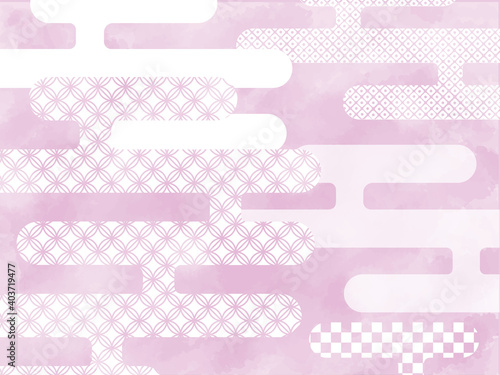 和柄 和風背景素材 エ霞と鹿の子文様 ピンク 桃色