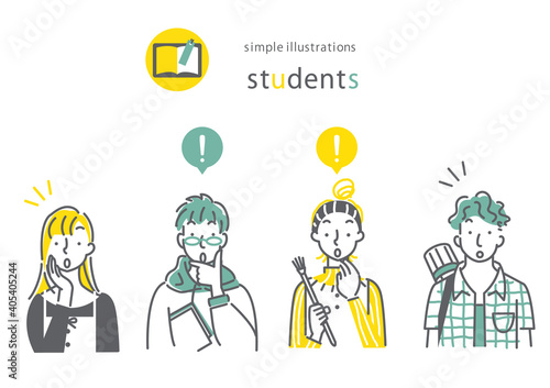 いろいろな学部の大学生のおしゃれでシンプルな線画イラストセット