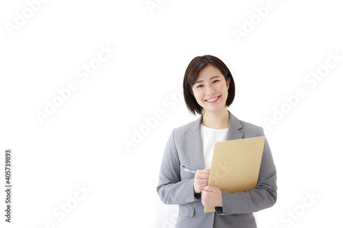バインダーを持つ女性社員