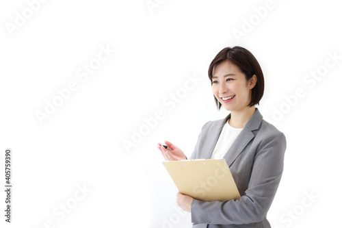バインダーを持つ女性社員