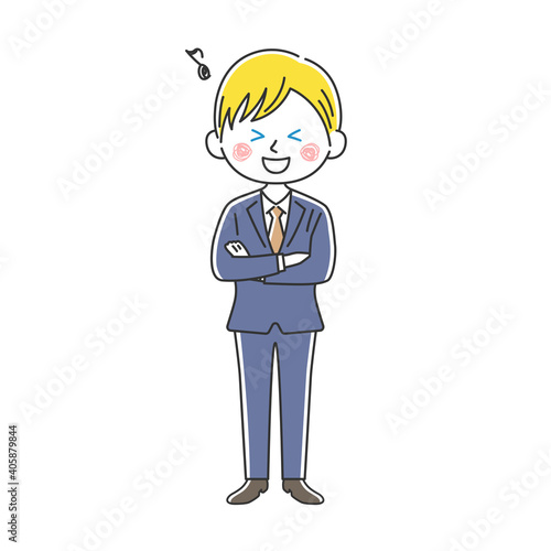 腕組みをする笑顔の白人ビジネスマンのイラスト