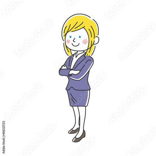 腕組みをする笑顔の白人ビジネスウーマンのイラスト