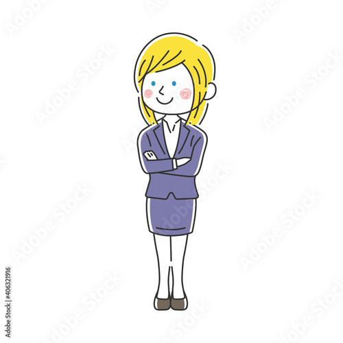 腕組みをする笑顔の白人ビジネスウーマンのイラスト