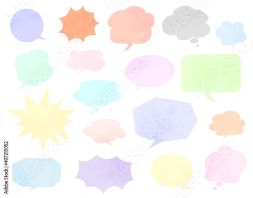 カラフルなパステルカラーの水彩テクスチャふきだしセット