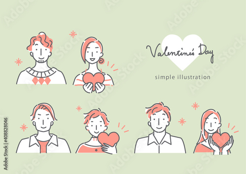 バレンタイン用のカップルのシンプルでおしゃれな線画イラスト素材セット