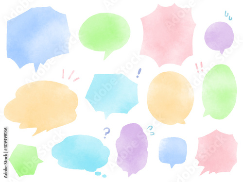 かわいいカラフルな漫画のせりふセット 水彩 手描き