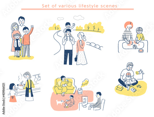 家族のライフスタイルシーン セット