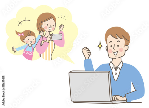 オンラインで会話する家族