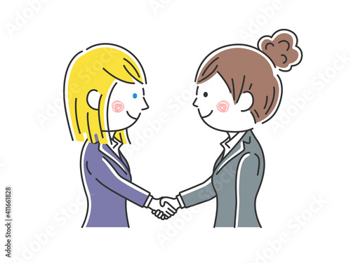 握手をする日本人と白人のビジネスウーマンのイラスト
