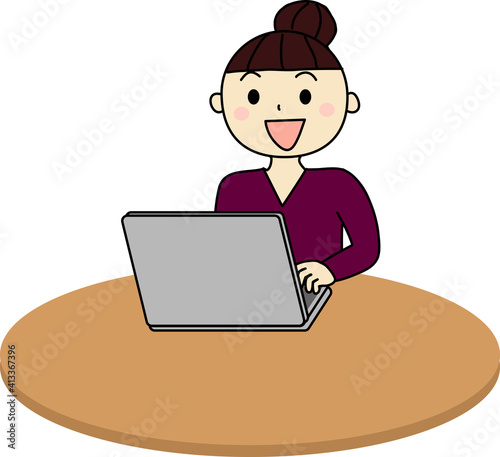 在宅ワークでパソコン中の女性 上半身