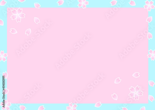 青色のフレームにピンクの背景 メッセージカードなどに!!