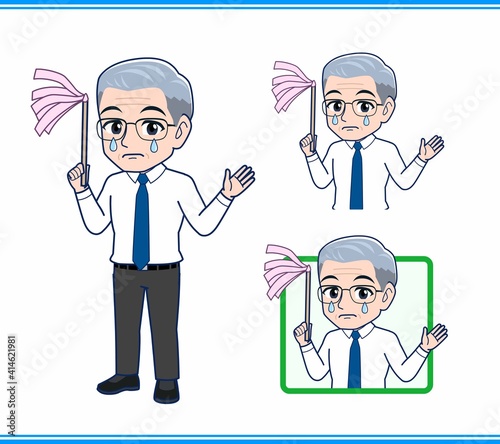掃除をしているサラリーマンの男性