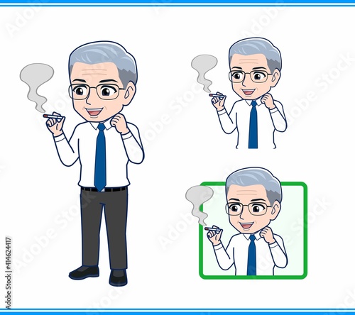 タバコを吸うサラリーマンの年配の男性