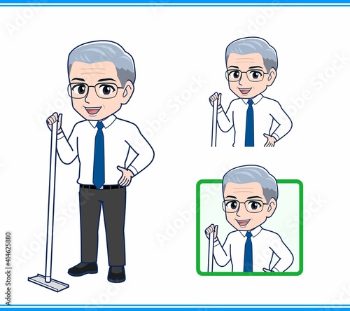掃除をしている社長