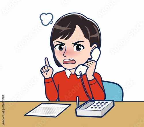 固定電話で問い合わせる女性