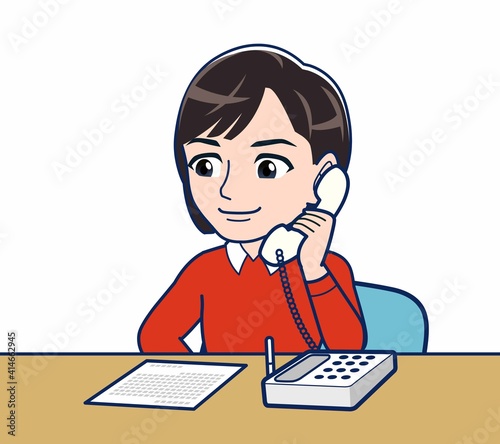 固定電話で問い合わせる女性
