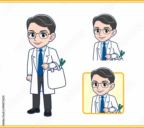 買い物している医者
