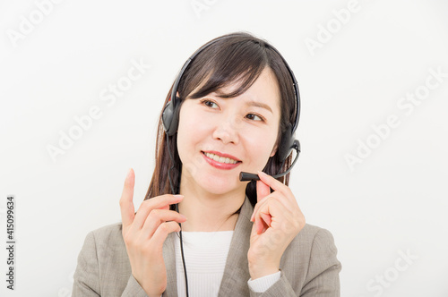 ヘッドセットを付けて仕事をする女性