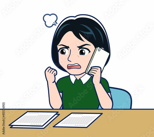 デスクワークをする若い女性