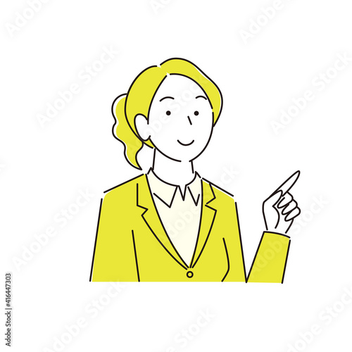指さし 笑顔の女性 スーツ姿 程よいシンプルなイラスト ベクター