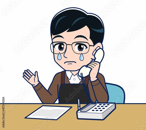 エプロンをしたアルバイトの男性
