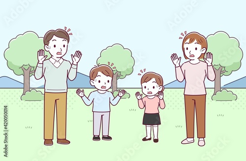 家族で公園でピクニック