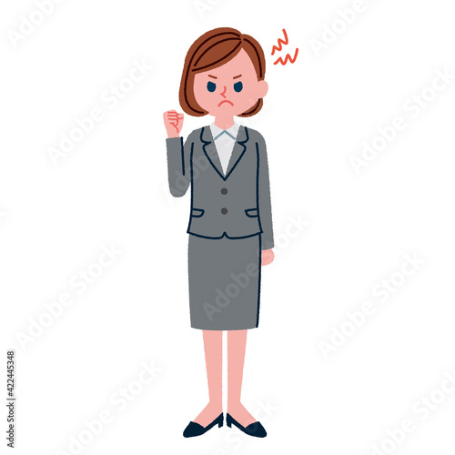 イライラしているスーツを着た女性のイラスト