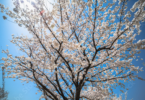 파란 하늘과 활짝 핀 벚꽃