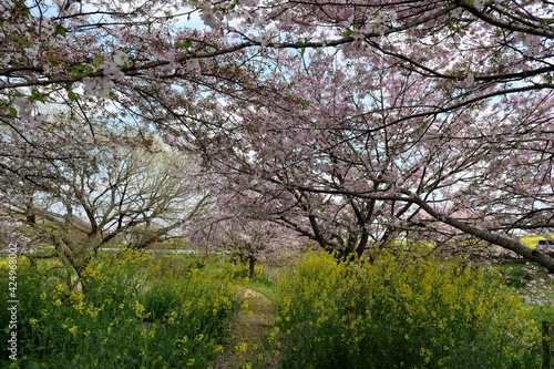 春の散策路 菜の花と桜 お花に囲まれて 風景
