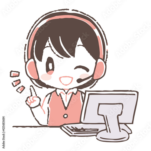指差しウインクするオペレーターの女性のイラスト