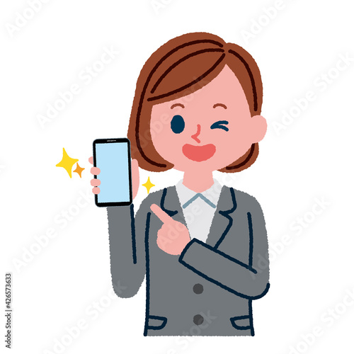 スマートフォンを持っているスーツを着た女性のイラスト