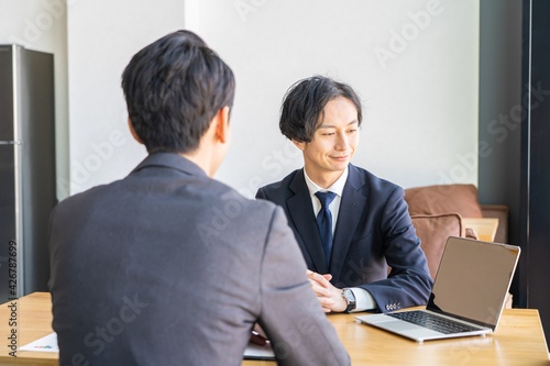 会議、打合せをする若い日本人ビジネスマン