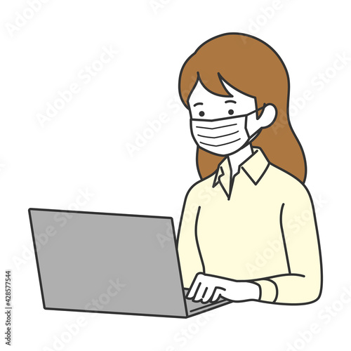マスクをつけて仕事をするビジネスウーマン イラスト素材