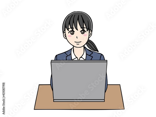 スーツ姿のノートパソコンに向かう女性 正面