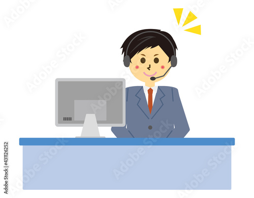 ヘッドセットを付けたテレフォンオペレーターのベクターイラスト 男性