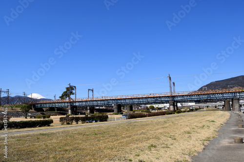 神奈川県松田 酒匂川遊歩道 小田急線橋梁方面