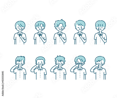 夏の制服を着た様々な男子学生の感情表現イラスト(上半身)