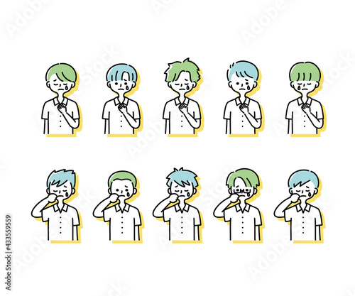 夏の制服を着た様々な男子学生の感情表現イラスト(上半身)