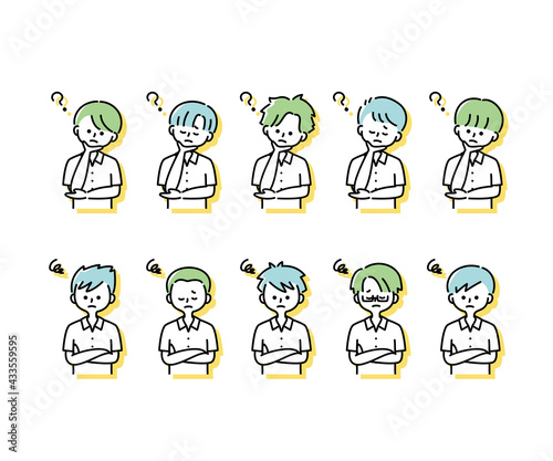 夏の制服を着た様々な男子学生の感情表現イラスト(上半身)