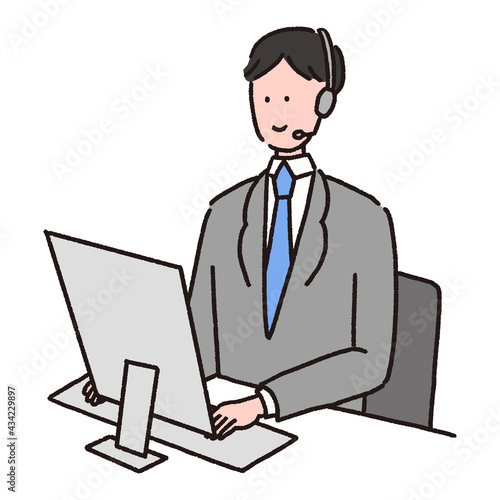 パソコン作業をしているコールセンターのオペレーターの男性