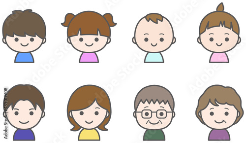 家族三世代(こども・赤ちゃん・大人・シニア)のアイコンセット