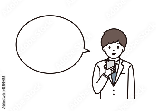 スマートフォンを操作する男性薬剤師 吹き出し