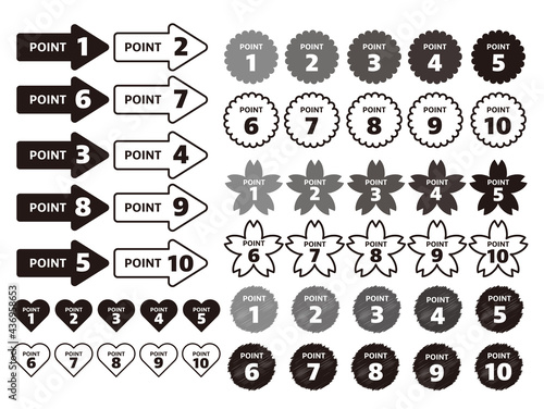 見出し矢印ポイントなどの素材セット/モノクロ/線画
