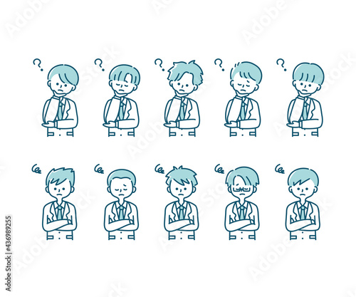 冬の制服を着た様々な男子学生の感情表現イラスト(上半身)