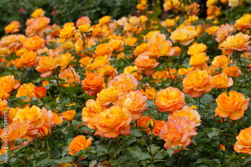 日本の植物園に咲く美しいオレンジ色のバラ