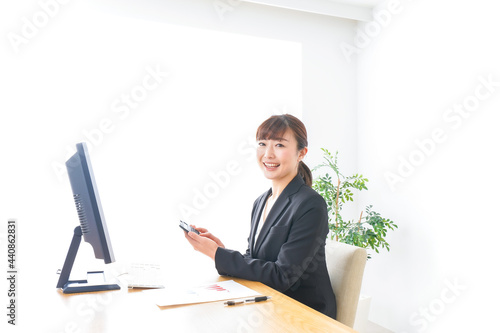 オフィスで楽しく仕事をするビジネスウーマン